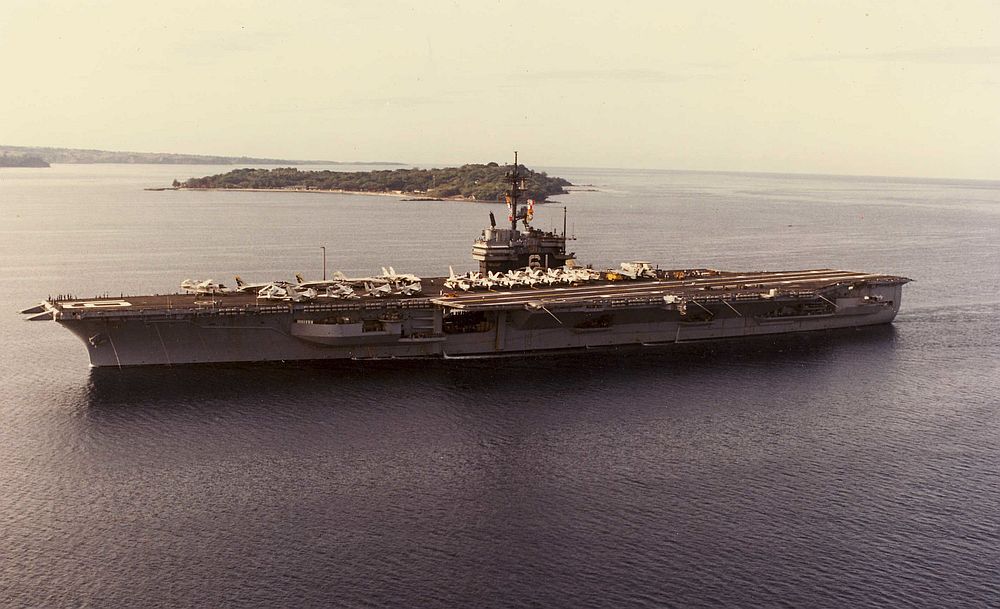 ![]() Official photo for the USS Ranger's 25th anniversary |